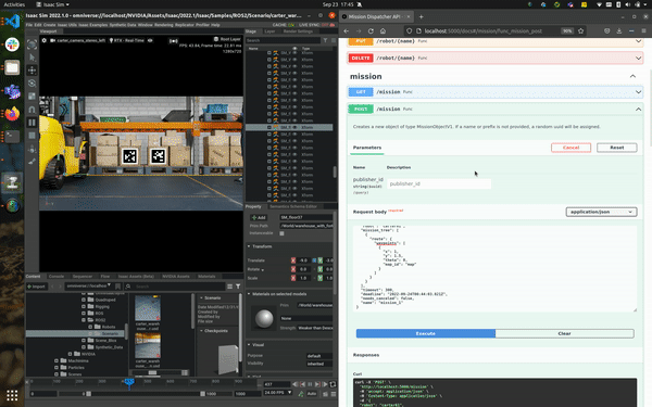 This tutorial walks you through steps to send missions from Mission Dispatch to Isaac ROS Mission Client using the VDA5050 protocol. The Mission Client is attached to an Isaac Sim environment running the Nav2 stack. The summary of steps are as follows: