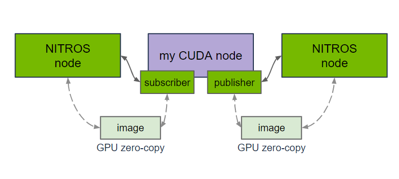 CUDA implemented in a ROS 2 node can take advantage of NITROS, the Isaac ROS implementation of type adaptation & type negotiation which enables accelerated computing in ROS 2.